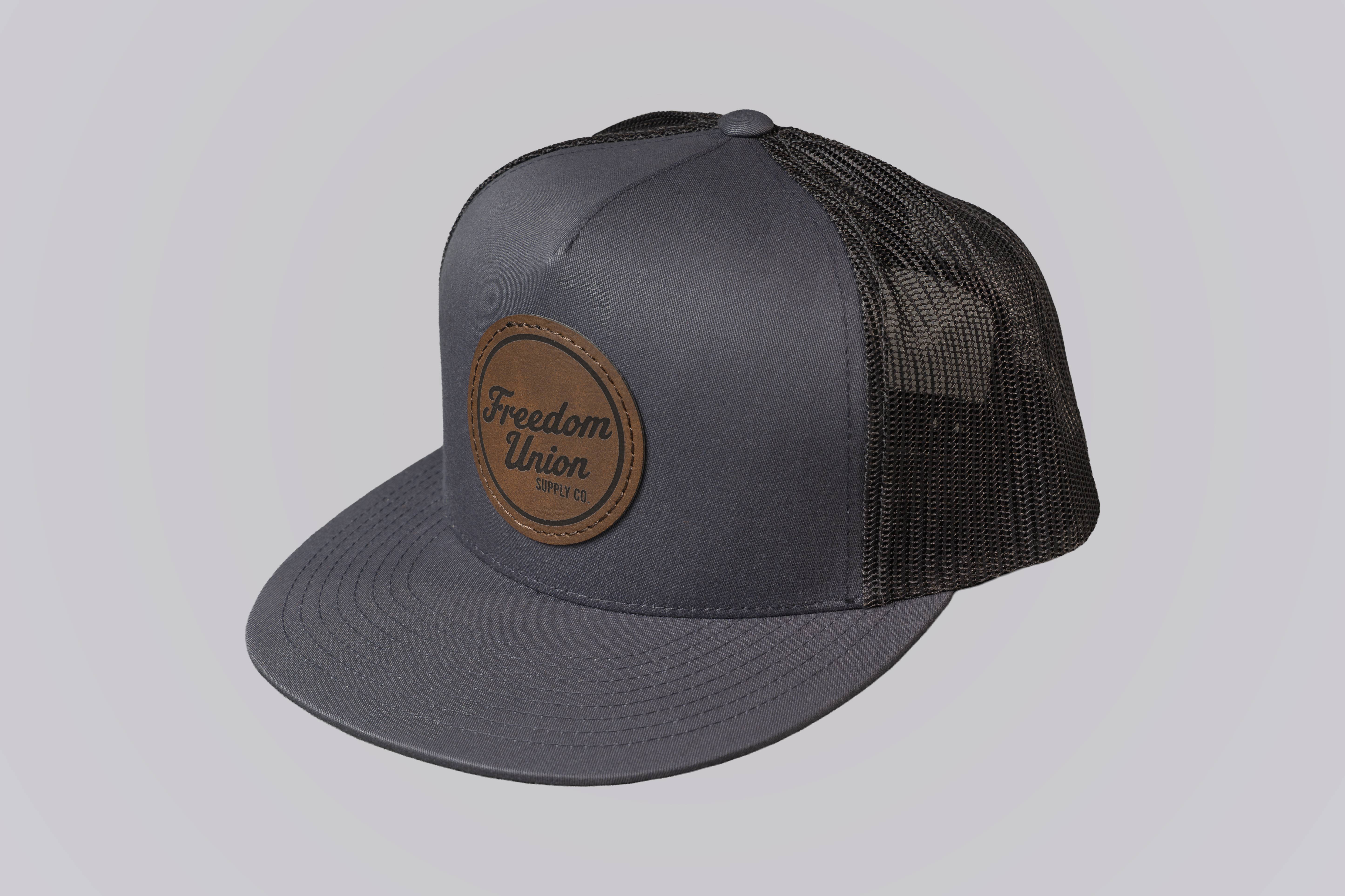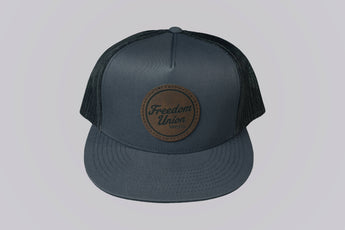 Step into timeless style with the Pioneer HARDY Snapback Hat by Freedom Union. Designed with durable gray twill front panels and a breathable black mesh back, this high-crown 5-panel snapback blends function with fashion. A striking brown leather-look patch on the front highlights the Freedom Union logo, while a subtle “HARDY” patch on the back adds rugged charm. The maroon bill offers a bold touch of contrast that sets this hat apart from the ordinary.